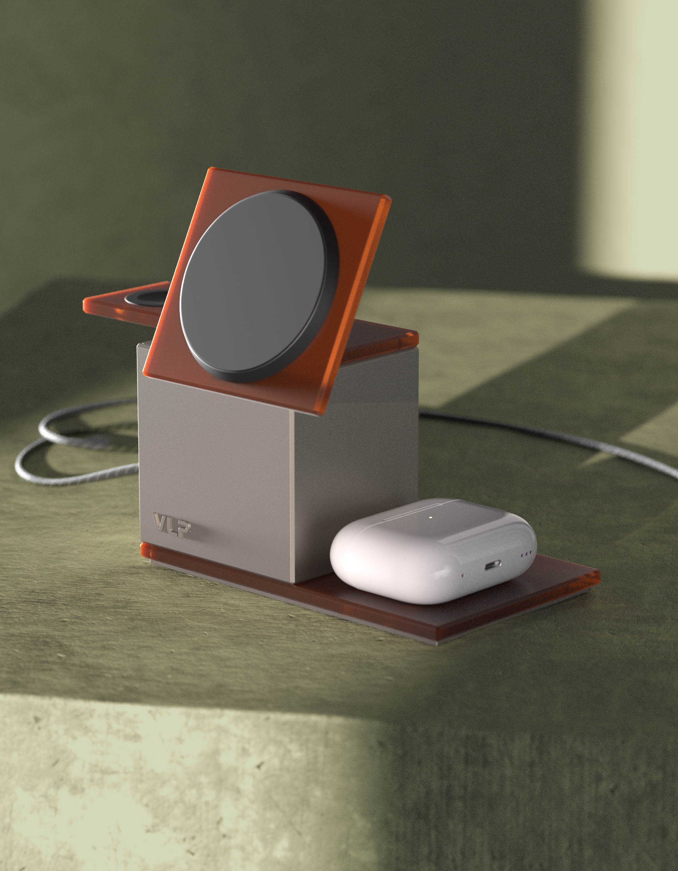 - Станция стандарта Qi2.2 в алюминиевом корпусе с прозрачными элементами из поликарбоната — продолжение архитектурной эстетики коллекции NEO, созданной в коллаборации VLP со Студией Артемия Лебедева.