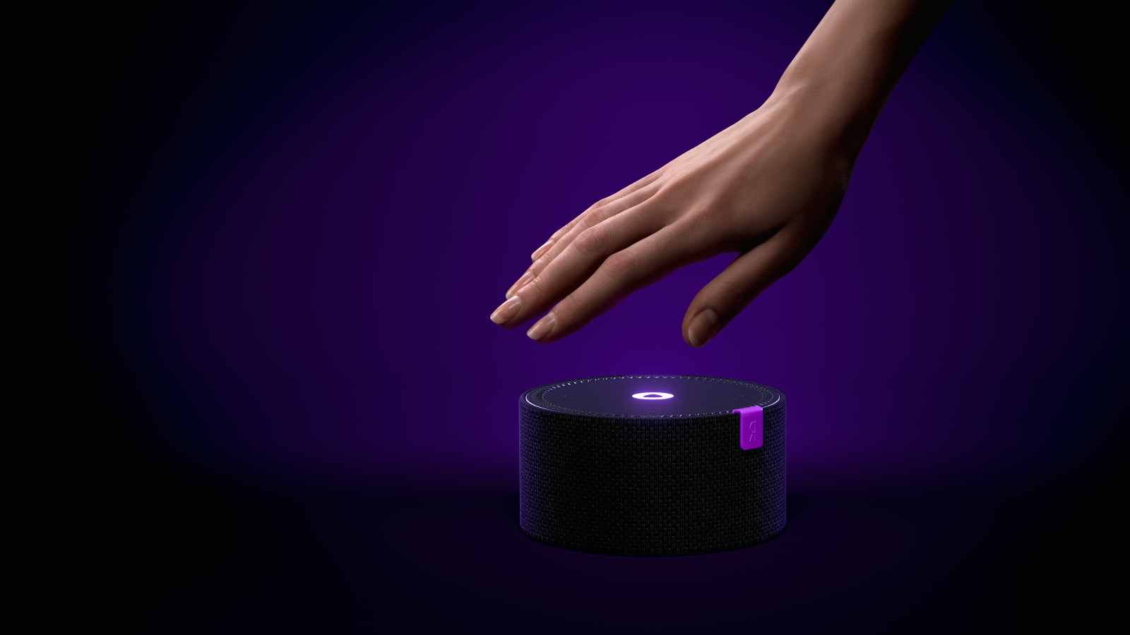 На верхнем торце корпуса расположен TOF-датчик — датчик движения рук. Жестами можно менять уровень громкости. Для этого нужно поднести ладонь к сенсору. Можно не прикасаться, а оставить несколько сантиметров свободного пространства. Чтобы увеличить громкость, надо плавно поднимать руку, чтобы уменьшить — опускать. Цвет индикатора меняется в зависимости от громкости: тихий звук — зелёный, громче — жёлтый, наиболее громкий — красный.