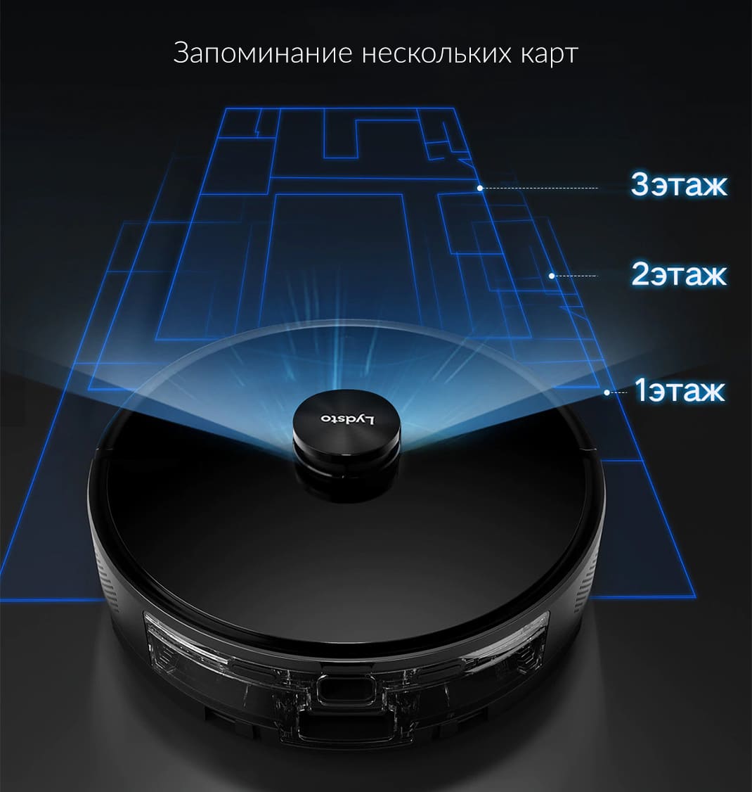 Устройство хранит в памяти 3 плана помещения, поэтому подходит для уборки в многоэтажных домах.