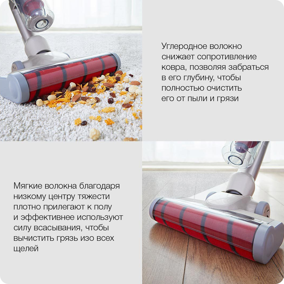 В обычных пылесосах на щетке скапливаются волосы и шерсть, и чтобы решить эту проблему, для пылесоса Jimmy была разработана особая щетка для чесания. В процессе уборки она захватывает с роликовой щетки волоски и отправляет их в пылесборник, предотвращая образование комков на самой щетке и сохраняя ее высокую эффективность.