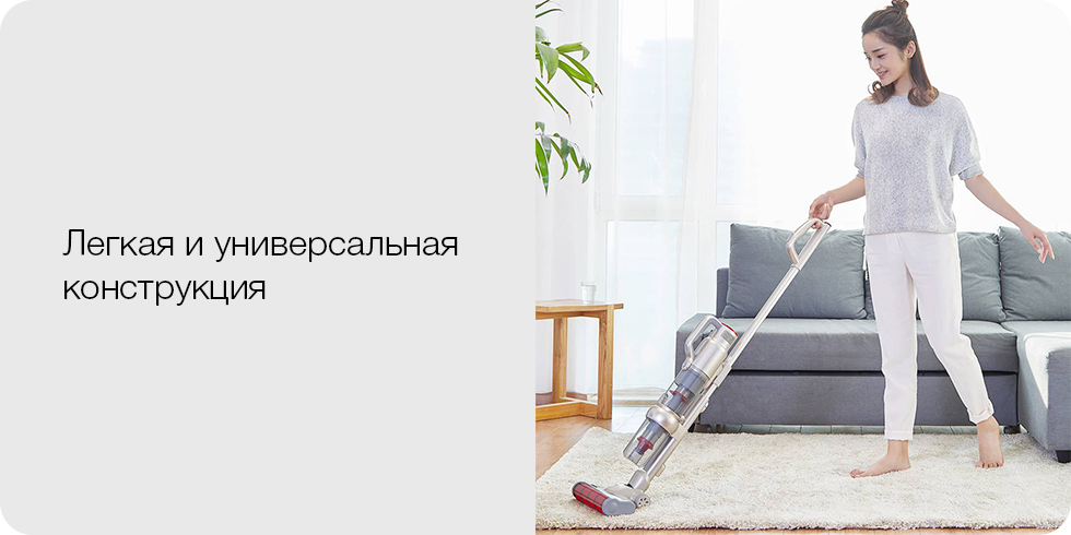 Центр тяжести пылесоса JV71 смещен к нижней части конструкции, за счёт чего улучшается сцепление между полом и щеткой, и разгружаются руки во время уборки. Кроме того, ролики на нижней части корпуса снижают усилие для толкания пылесоса, чтобы уборка прошла легко и гладко.