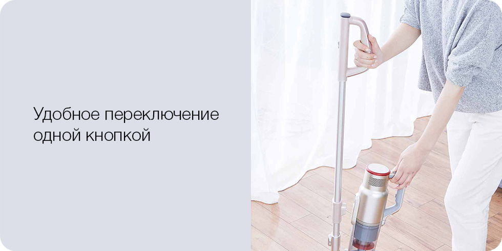 После полной очистки пола от пыли достаточно нажать всего одну кнопку, чтобы снять двигатель и подсоединить к нему другие насадки, сделав из полового пылесоса мобильный. С разными насадками, шлангом или съёмной металлической трубкой можно собирать варианты под решение разных задач, чтобы убрать пыль из-под кровати, из узких щелей, из кондиционера и других мест.