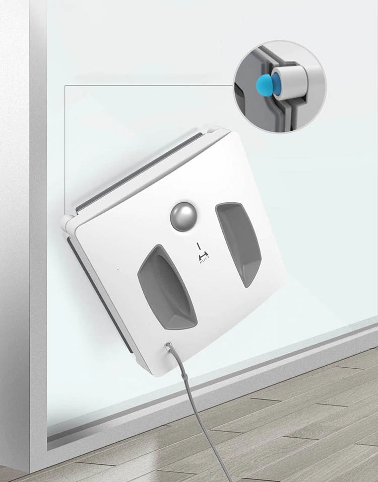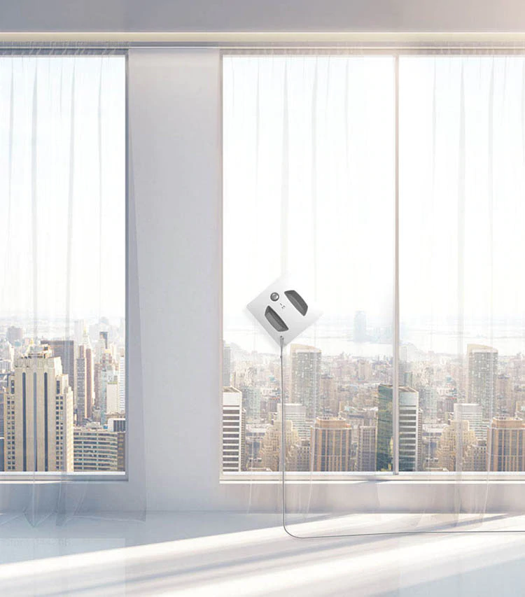 Робот имеет резервный аккумулятор на случай пропадания электричества и будет оставаться на стекле 20 минут.