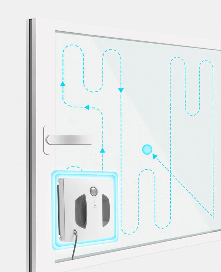 Инновационное планирование перекрывающихся траекторий с возвратно-поступательным движением, предварительное прогнозирование крайнего положения и предварительное замедление. Уменьшить контакт с оконными рамами. Оптимизируйте пути обхода препятствий для окон разных типов. Он автоматически вернется в исходное положение после очистки.